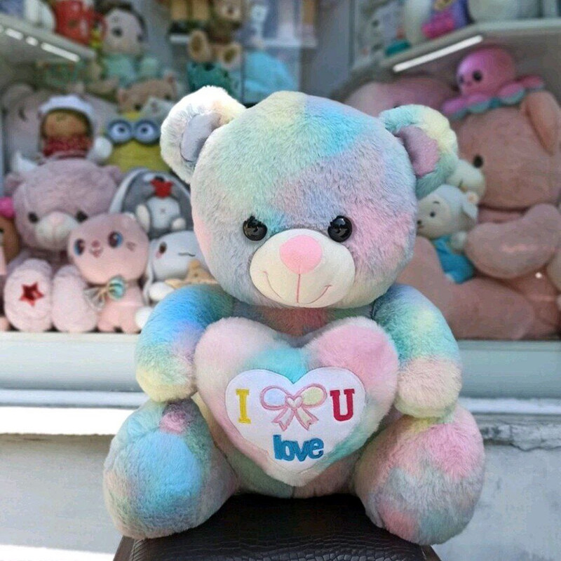 عروسک مدل خرس آبرنگی قلب به دست ارتفاع 40 سانتی متر