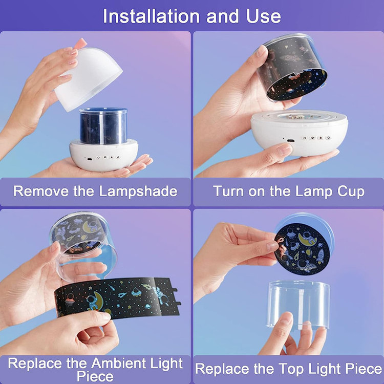 اگر شبی رویایی و خوابی آرام برای کودک دلبندتان می خواهید چراغ خواب کودک Dream Projection Lamp این امکان را به شما خواهد داد . این چراغ خواب دارای دو حالت آفتابی و مهتابی بوده که شما می توانید بر اساس علاقه خود آن را انتخاب و حتی میزان نوردهی آن را نیز تنظیم نمایید. این چراغ خواب 6 نوار تصویری دارد که می توانید آن ها را درون چراغ بگذارید و جایگزین یکدیگر نمایید. درگاه Micro USB جهت اتصال به برق در دستگاه تعبیه شده است.