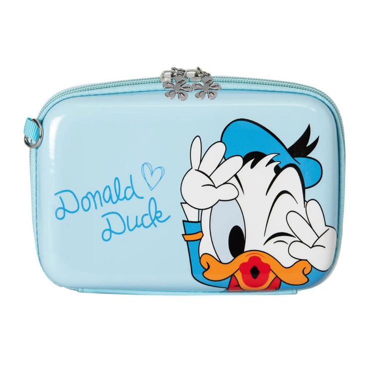 رنگ: آبی طرح: Donald Duck جنس: فایبرگلاس نحوه بسته شدن: زیپ دارای یک محفظه اصلی دارای یک جیب توری داخلی دارای بند قابل تنظیم جداشدنی وزن: 120 گرم ابعاد: 19x13 سانتیمتر
