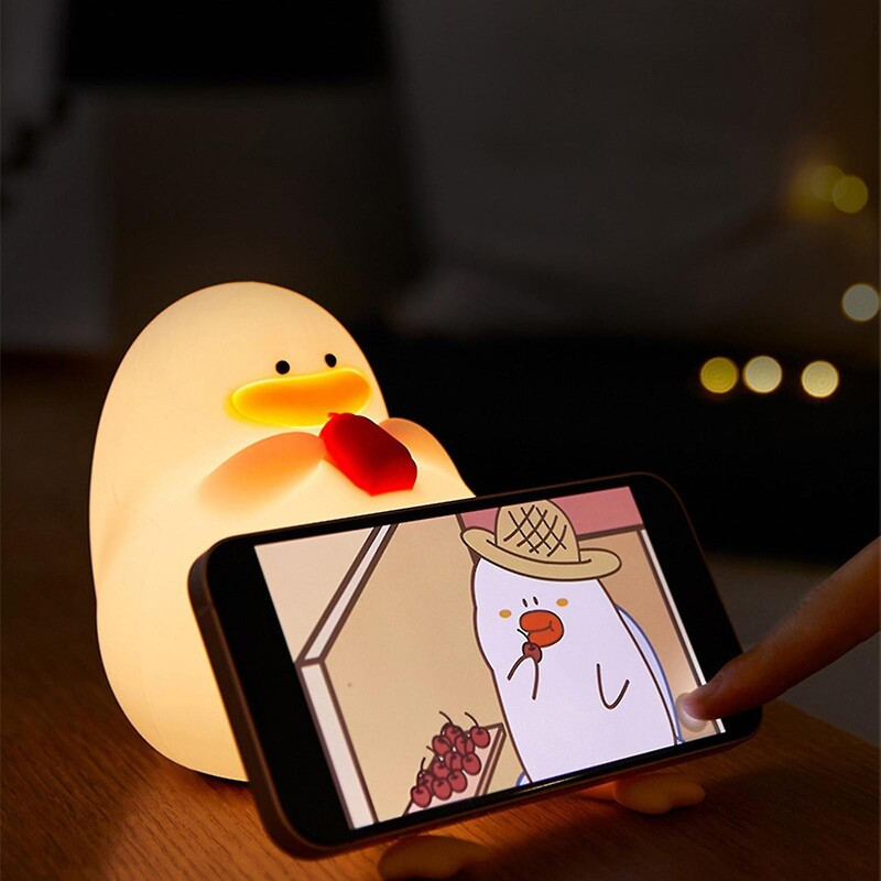 چراغ خواب کودک مدل اردک وسیله ای زیبا و کاربردی و البته ضروری برای اتاق خواب کودک شماست. جنس این چراغ خواب سیلیکونی بوده و از هرگونه آسیب رسانی به کودک شما جلوگیری می کند. این چراغ خواب با طراحی جذابی به شکل اردک دارای حالت نوری شب خواب است. چراغ خواب کودک یک ویژگی جذاب دارد که می توانید با ضربه زدن به سطح سیلیکونی چراغ خواب آن را روشن و خاموش کنید. این چراغ خواب کودک قابلیت شارژ مجدد را داراست و از طریق کابل Type-C (تایپ سی) موجود در جعبه می توانید آن را شارژ نمایید.از این چراغ خواب میتوانید به عنوان هولدر موبایل نیز استفاده نمایید.
