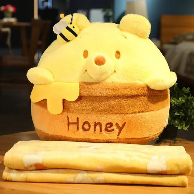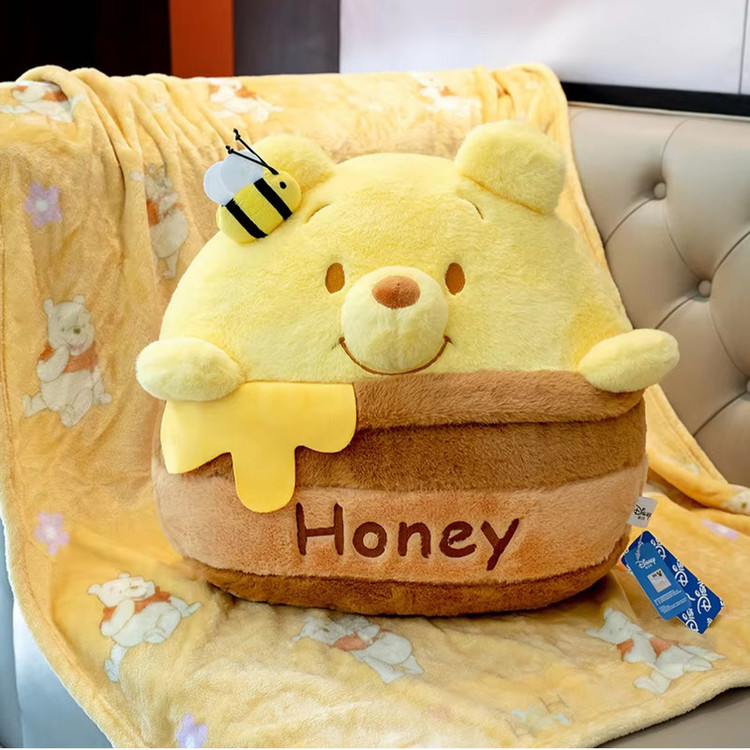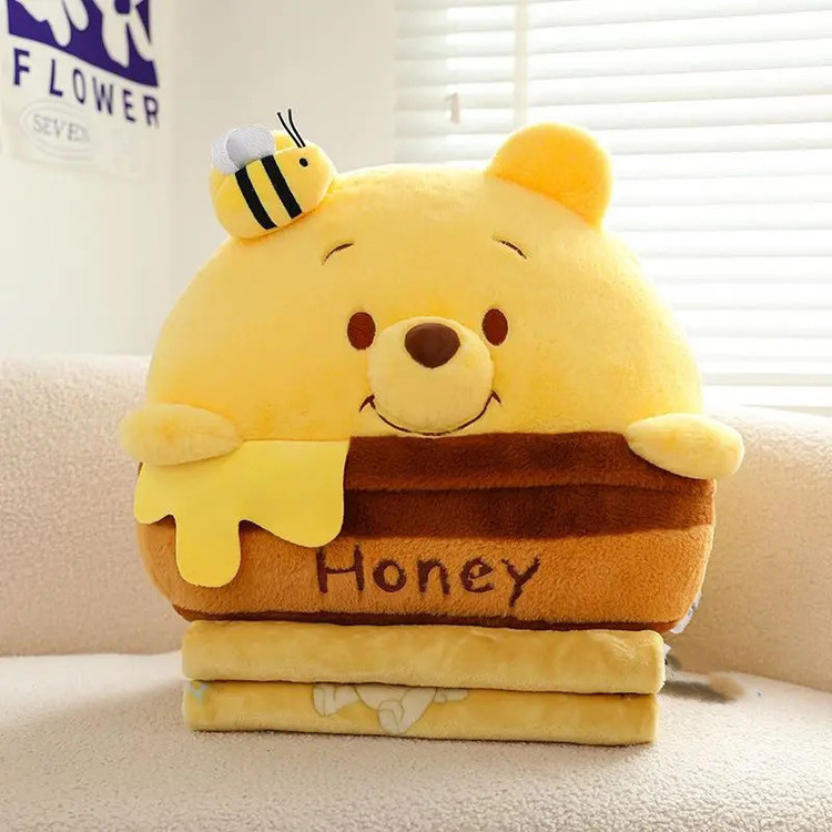 عروسک بالشتی طرح خرس پو مدل توپی کد JI110 ارتفاع 45 سانتی‌متر به همراه پتو